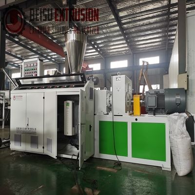 BEISU Pelletizzazione di PVC in plastica Il granulatore a taglio caldo a doppia vite conico raffreddato ad aria è utilizzato principalmente per la granulazione a taglio caldo e l'estrusione di polveri di plastica come il carbonato di calcio PVC+CaCo in granuli.Ha le caratteristiche di bassa velocità di taglio, plasticazione e miscelazione uniformi, elevato rendimento e qualità stabile.